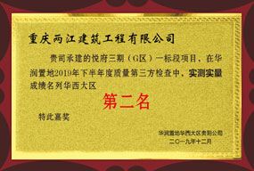 • 重庆华润半山悦景项目荣获华润置地集团华西大区2021年三季度EHS评估第二名