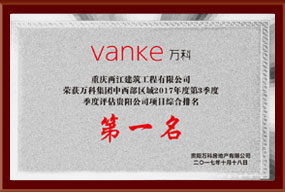 • 万科E区三期二标荣获万科集团中西部区域2017年3季度综合评估第一名