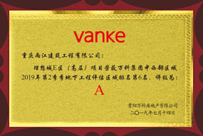 • 万科中西部区域2019年第二季度地下工程评估区域第六名